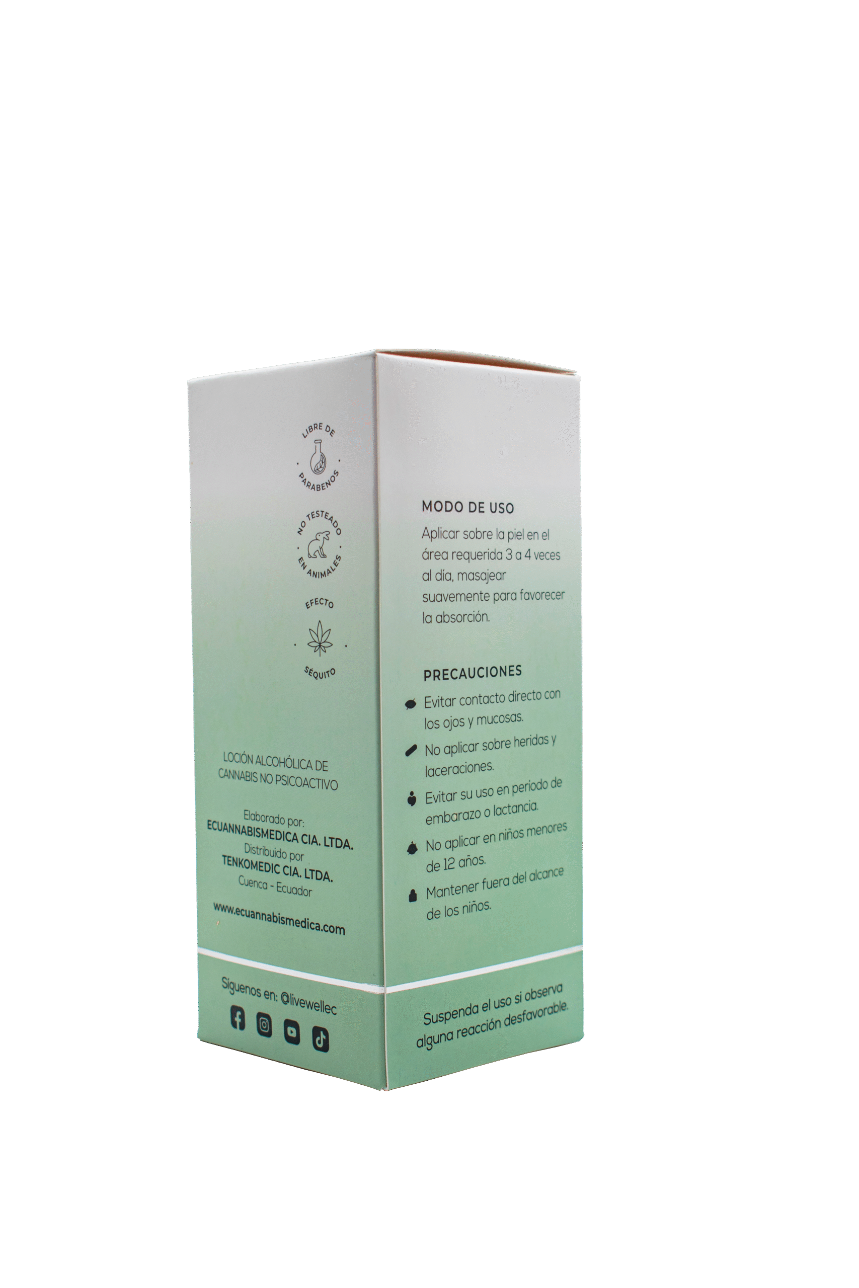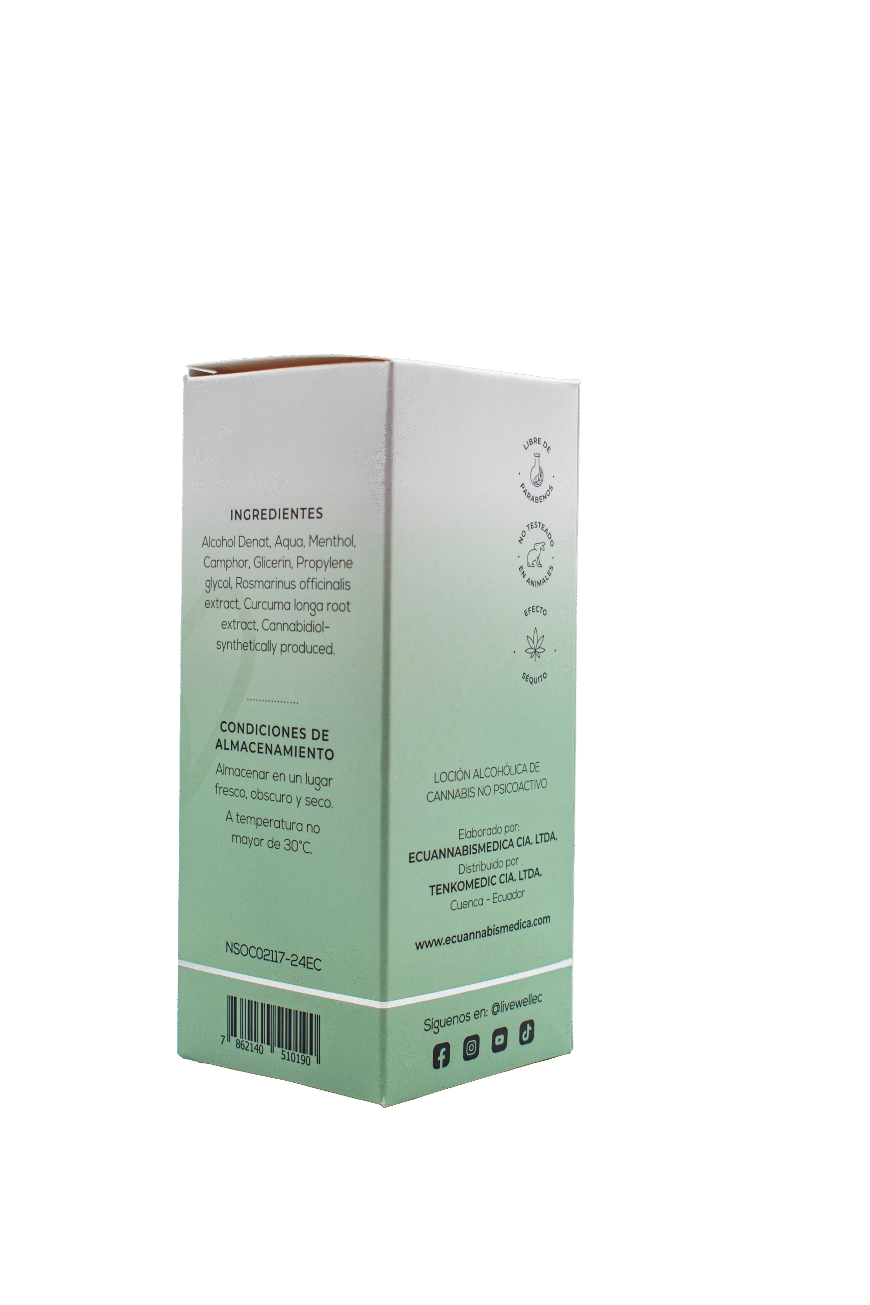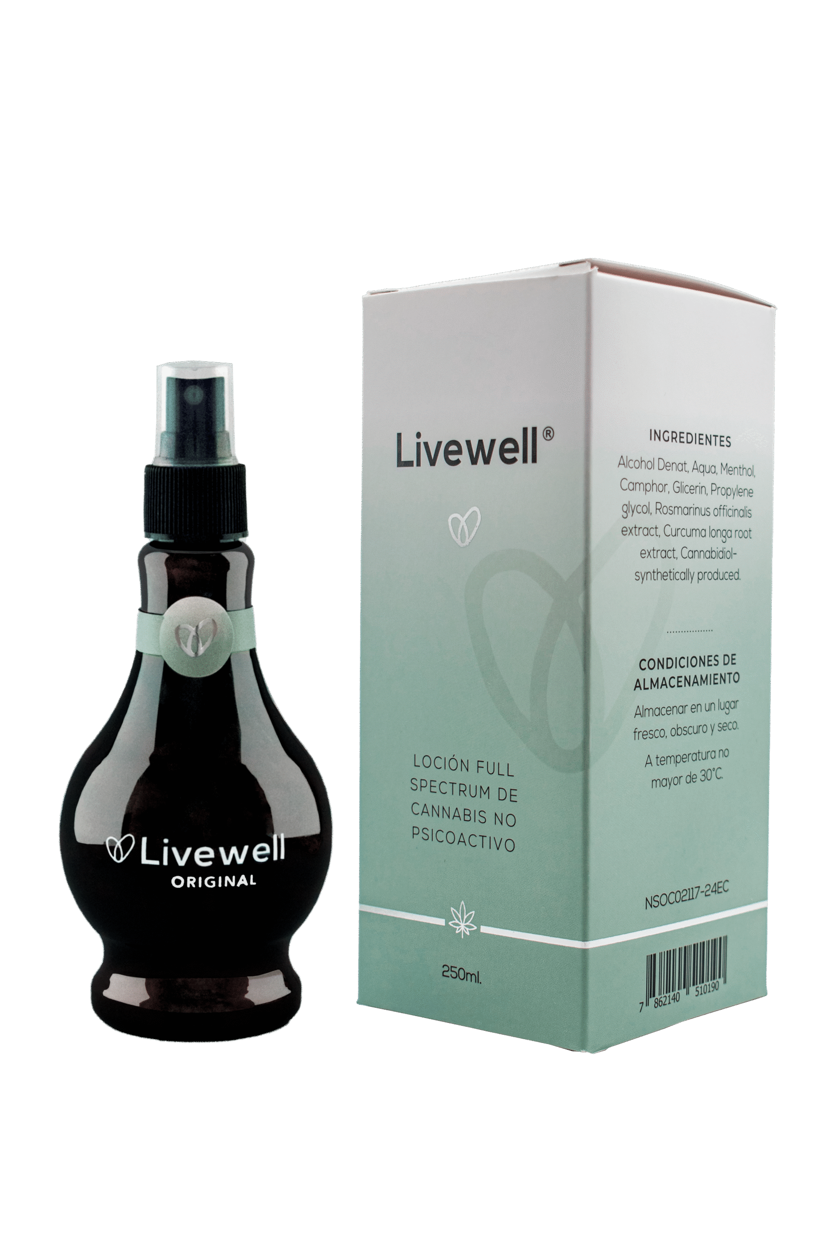 Livewell es una loción de cannabis no psicoactivo que alivia el dolor muscular y articular gracias a su fórmula con extracto de cannabis full spectrum (efecto séquito), aceites esenciales de romero y cúrcuma, mentol y alcanfor, generando un efecto frío-calor.